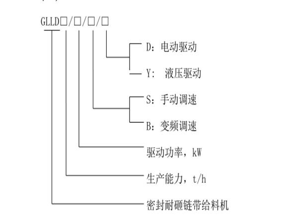 密封式耐砸鏈帶給料機(jī)型號(hào)說(shuō)明: