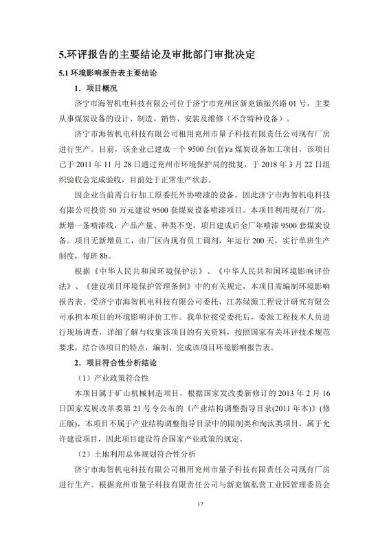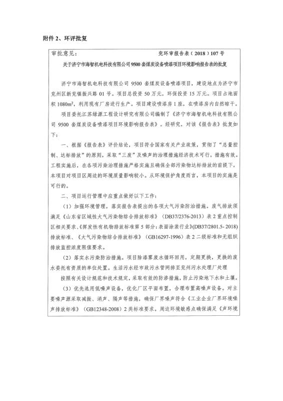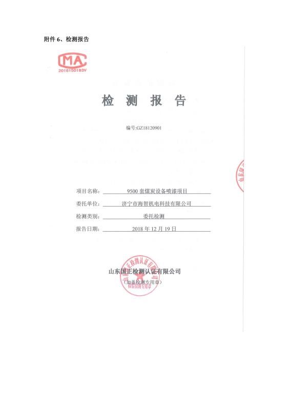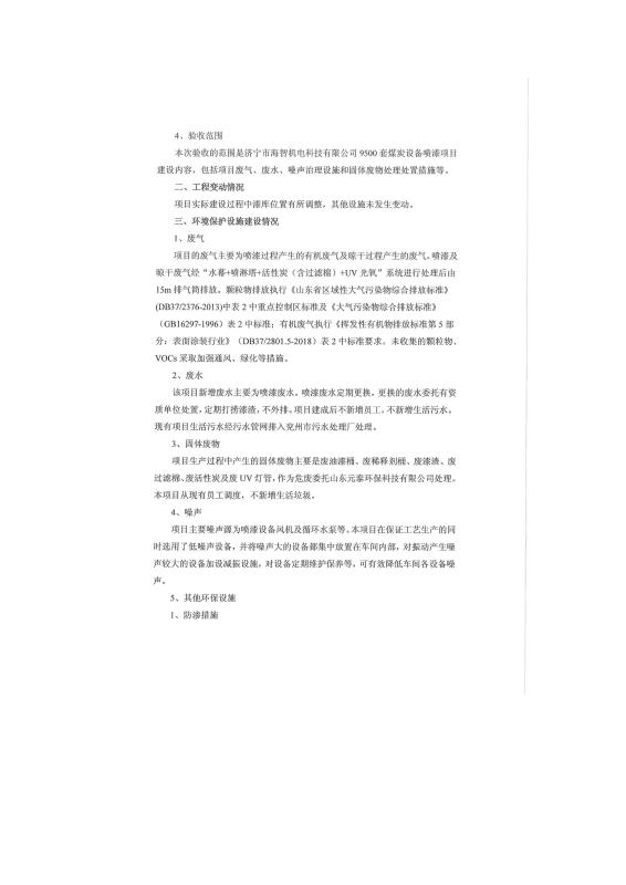 > 9500套煤炭設備噴漆項目竣工環(huán)境保護驗收監(jiān)測報告